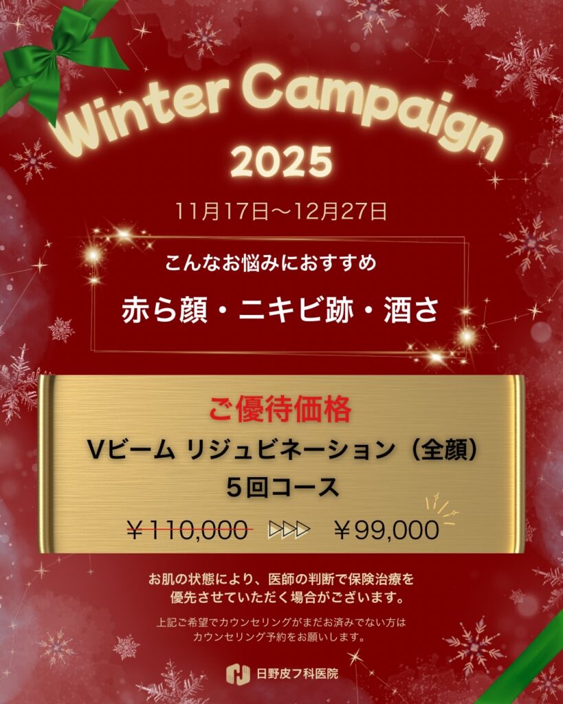 今回は、Vビームリジュビネーション(全顔)5回コースが10%OFFになります!