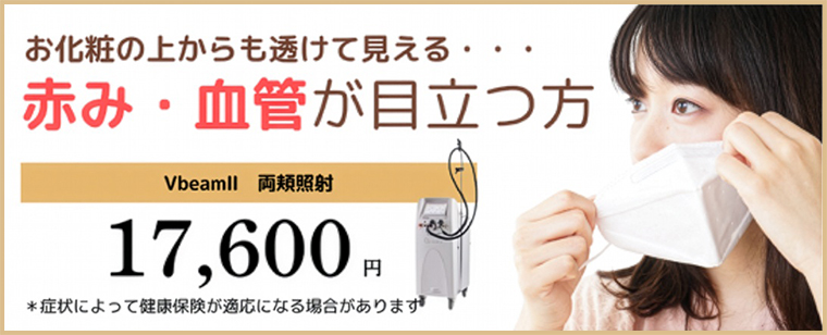 Vビームは、古くから大学病院でも実施されており症例の実績が豊富かつ、健康保険が適応されている、治療実績が認められた機種です。