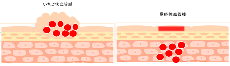 いちご状血管腫は、表面がいちご状に盛りあがった状態です。多くは自然に消失していきますが、大きなもの・部位により日常生活に不便を生じるため治療対象です。