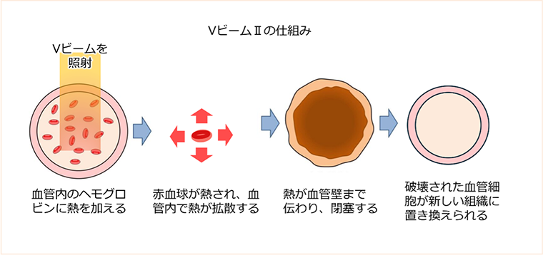 Vビームは血管内の赤血球に含まれるヘモグロビンに反応し、熱を加えます。